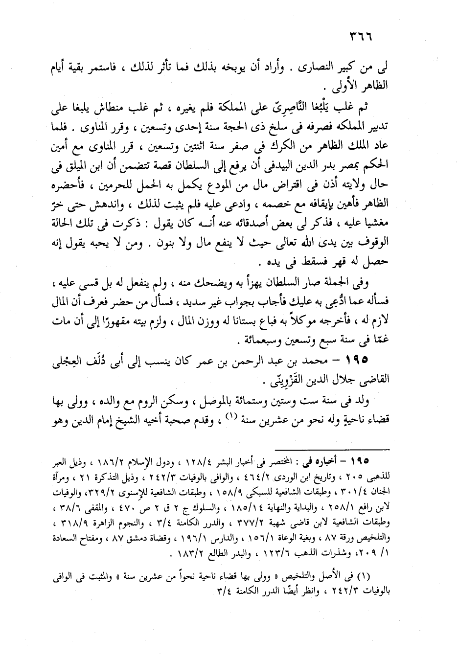 لي من كبير النصارى. وأراد أن يوبخه بذلك فما تأثر لذلك، فاستمر بقية أيام الظاهر الأولى.