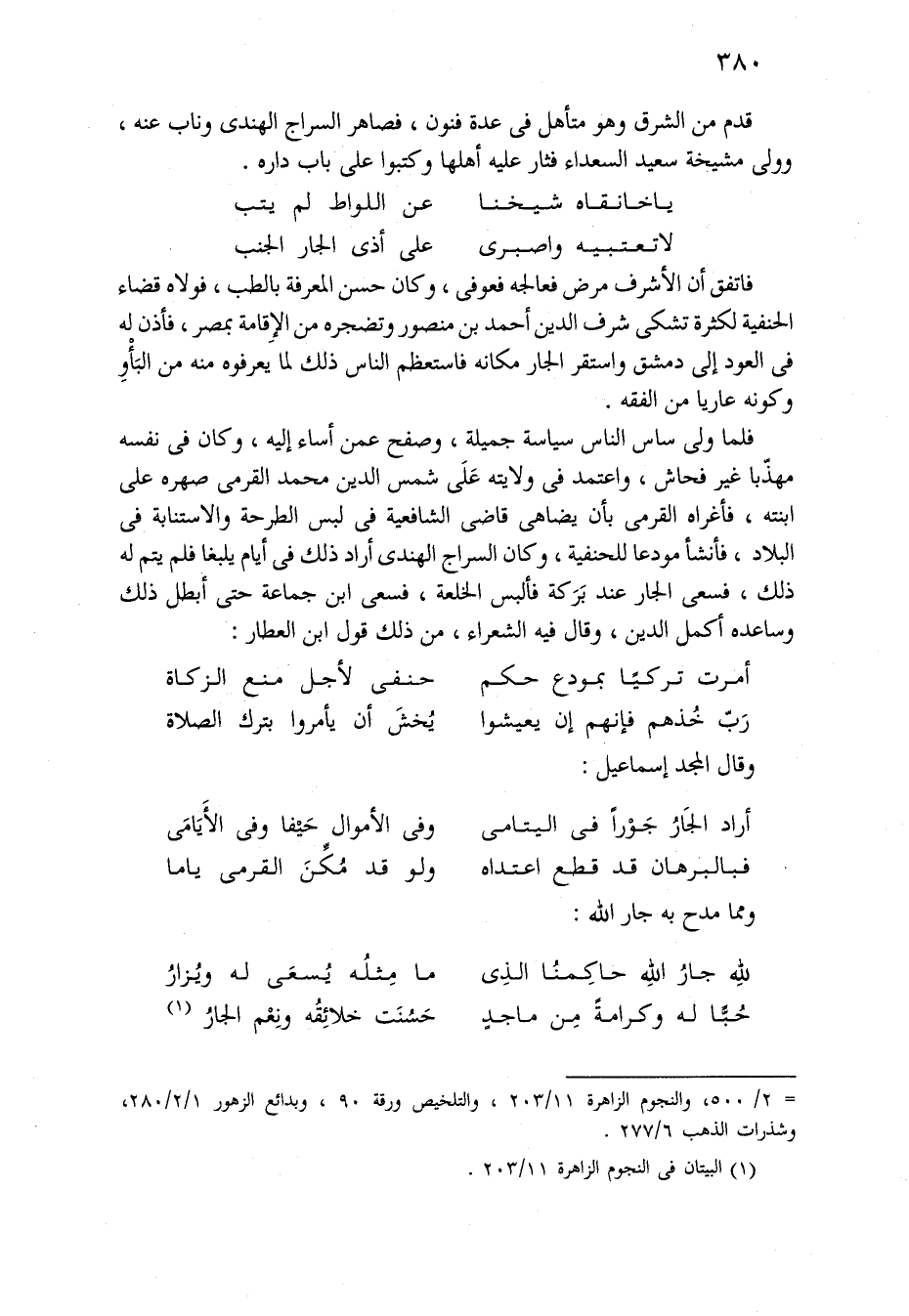للهِ جارُ اللهِ حاكِمُنا الَّذِي ... مَا مِثلُه يُسعَى لَهُ ويُزَارُ