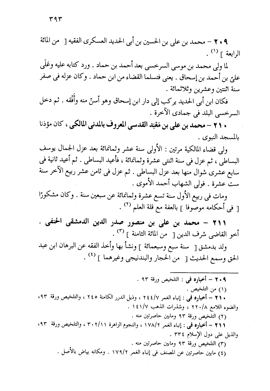 فكان ابن أبي الحديد يركب إِلَى دار ابن إسحاق وهو أسنّ منه وأَفْقَه. ثُمَّ دخل السرخسي البلد فِي جمادى الآخرة.