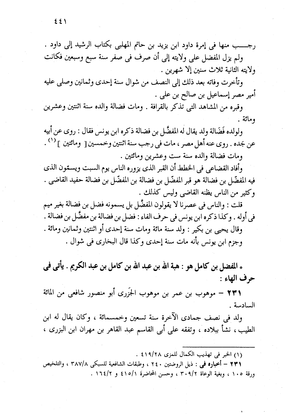المفضل بن كامل هو: هبة الله بن عبد الله بن كامل بن عبد الكريم. يأتي فِي