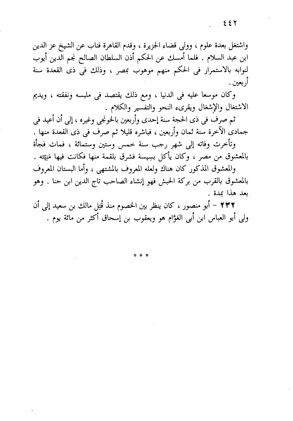 ثم صرف فِي ذي الحجة سنة إحدى وأربعين بالجونجي وغيره، إِلَى أن أعيد فِي جمادى الآخرة سنة ثمان وأربعين، فباشره قليلاً ثُمَّ صرف فِي ذي القعدة منها.