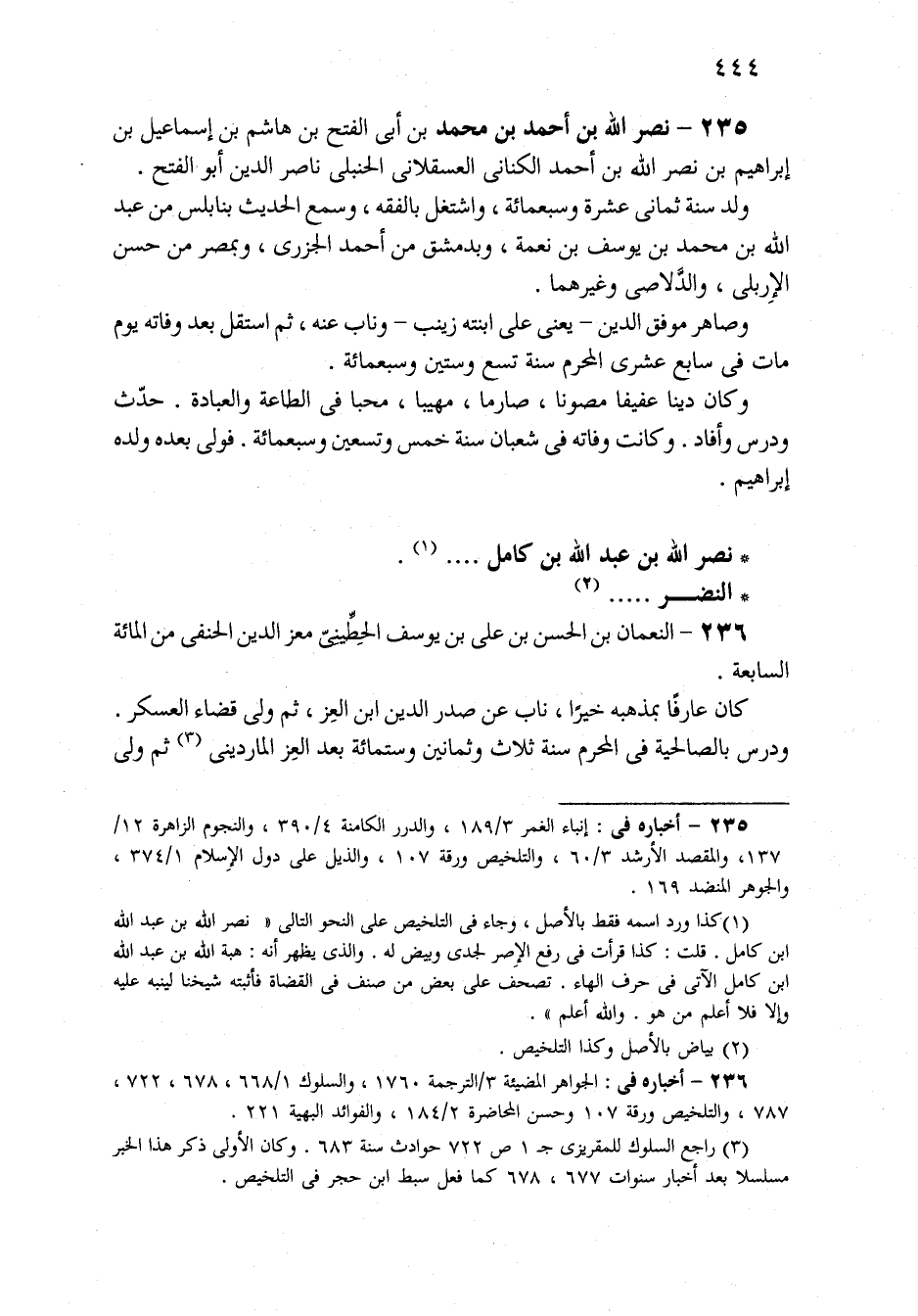 نصر الله بن أحمد بن محمد بن أبي الفتح بن هاشم بن إسماعيل بن إبراهيم بن نصر الله بن أحمد الكناني العسقلاني ناصر الدين أبو الفتح.