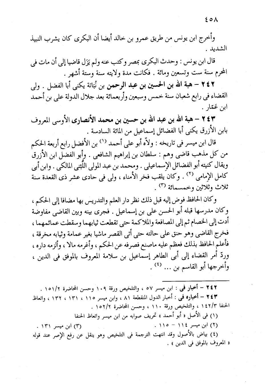 وأخرج ابن يونس من طريق عمرو بن خالد أن البكري كَانَ يشرب النبيذ الشديد.