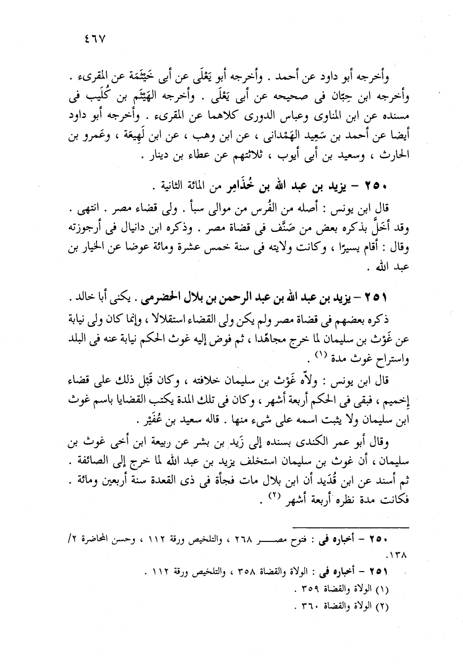 ذكره بعضهم فِي قضاة مصر وَلَمْ يكن ولي القضاء استقلالاً، وإنما كَانَ ولي نيابة عن غَوْث بن سليمان لما خرج مجاهداً، ثُمَّ فوض إِلَيْهِ غوث الحكم نيابة عنه فِي البلد واستراح غوث مدة.