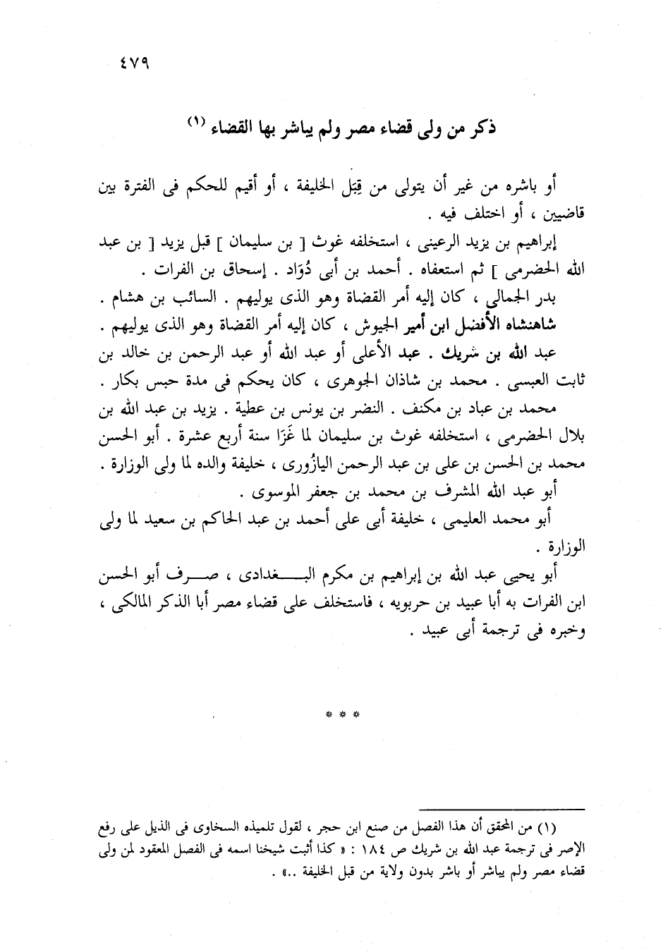 ذكر من ولي قضاء مصر وَلَمْ يباشر بِهَا القضاء