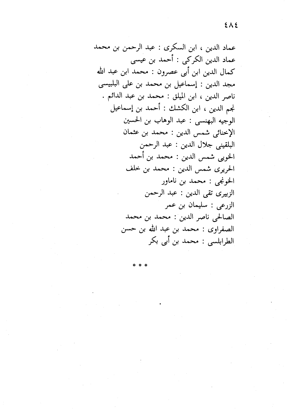 عماد الدين: ابن السكري: عبد الرحمن بن محمد عماد الدين الكركي: أحمد بن عيسى كمال الدين ابن أبي عصرون: محمد ابن عبد الله مجد الدين: إسماعيل بن محمد بن علي البلبيسي ناصر الدين، ابن الميلق: محمد بن عبد الدائم.