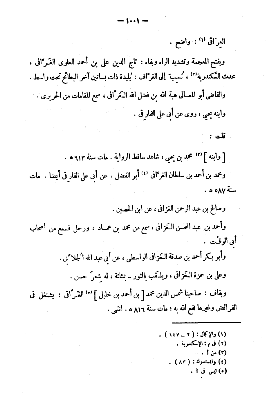 ومحمد بن أحمد بن سلطان الغرافي أبو الفضل، عن أبي الفارقي أيضاً. مات سنة 587.