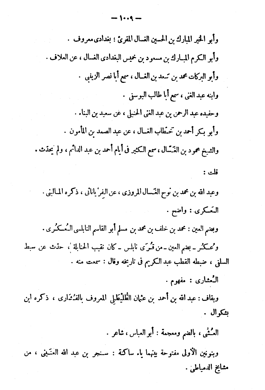 وعسكر بضم العين من قرى نابلس كان نقيب الحنابلة، حدث عن سبط السلفي، ضبطه القطب عبد الكريم في تاريخه وقال: سمعت منه.
