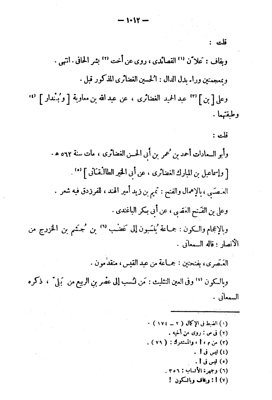 قلت: وبقاف: علان القصائدي، روى عن أخت بشر الحافي. انتهى.