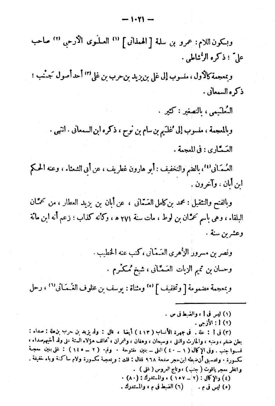 وبالفتح والتثقيل: محمد بن كامل العماني، عن أبان بن يزيد العطار، من عمان البلقاء، وهي باسم عمان بن لوط، مات سنة 271، وكأنه كذاب؛ زعم أنه ابن مِئَة وعشرين سنة.