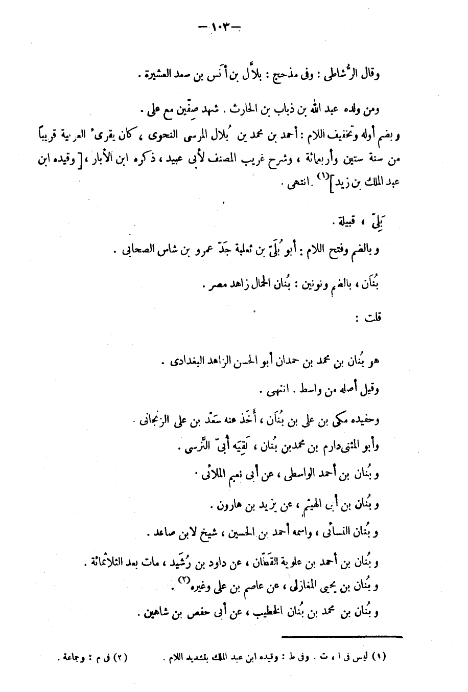 وقال الرُّشاطي: وفي مذحج: بلالُ بن أَنَس بن سعد العشيرة.