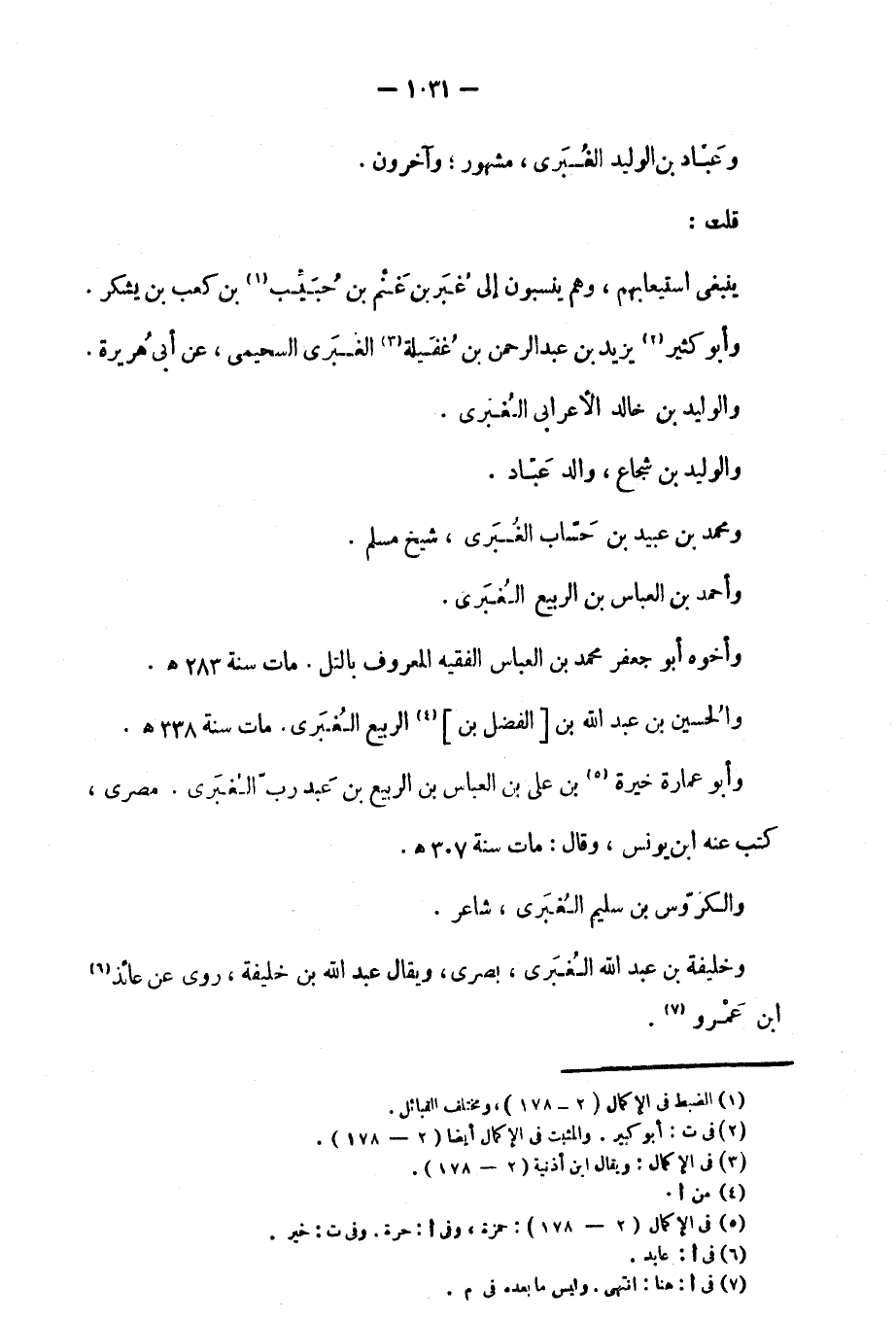 قلت: ينبغي استيعابهم، وهم ينسبون إلى غبر بن غنم بن حبيب بن كعب بن يشكر.