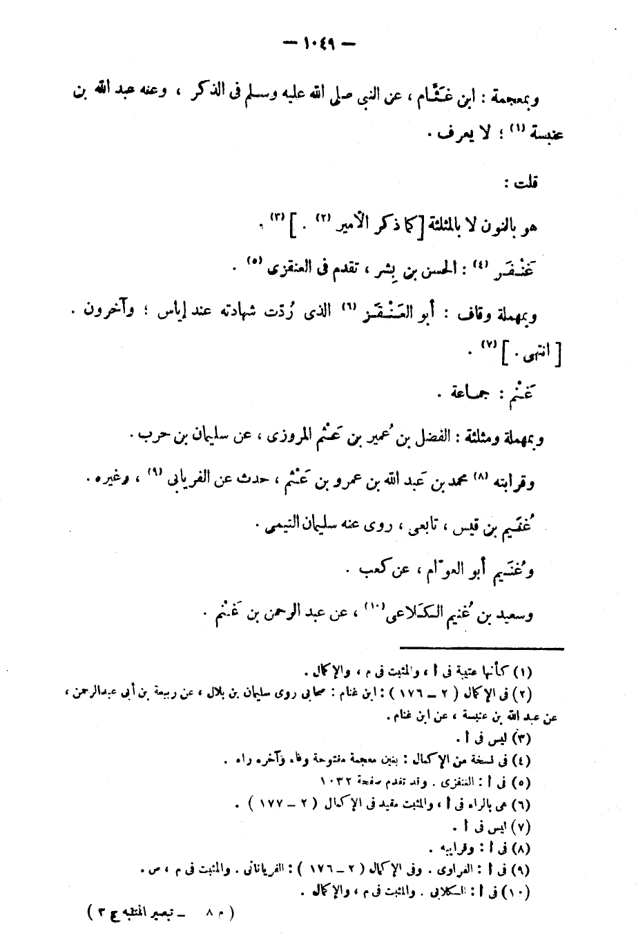 وبمعجمة: ابن غثام، عن النبي صلى الله عليه وسلم في الذكر، وعنه عبد الله بن عنبسة؛ لا يعرف.