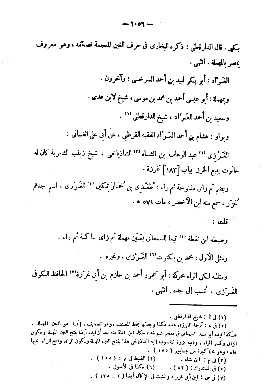قلت: وضبطه ابن نقطة تبعاً للسمعاني بعين مهملة ثم زاي ساكنة ثم راء.