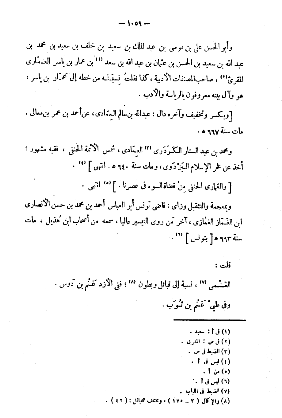 قلت: الغنمي، نسبة إلى قبائل وبطون؛ ففي الأزد غنم بن دوس.