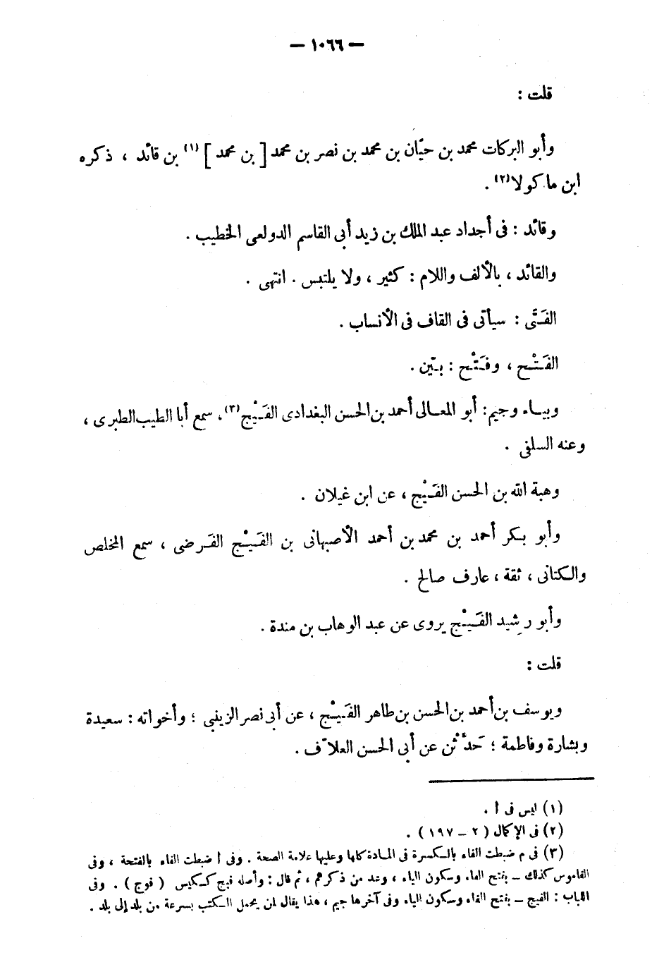 قلت: وأبو البركات محمد بن حيان بن محمد بن نصر بن محمد بن محمد بن قائد، ذكره ابن ماكولا.