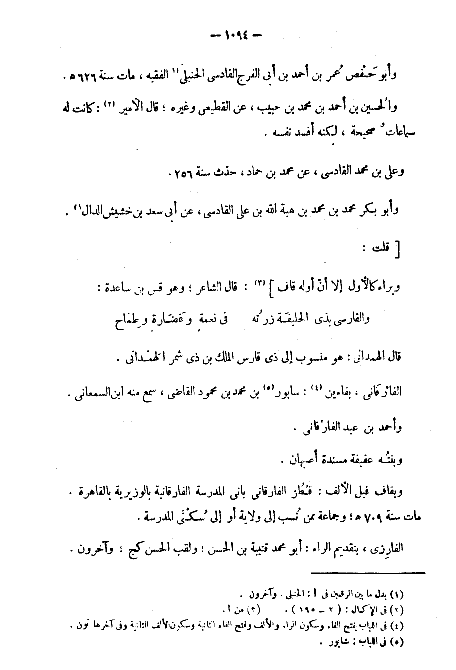 وأبو حفص عمر بن أحمد بن أبي الفرج القادسي الحنبلي الفقيه، مات سنة 626.