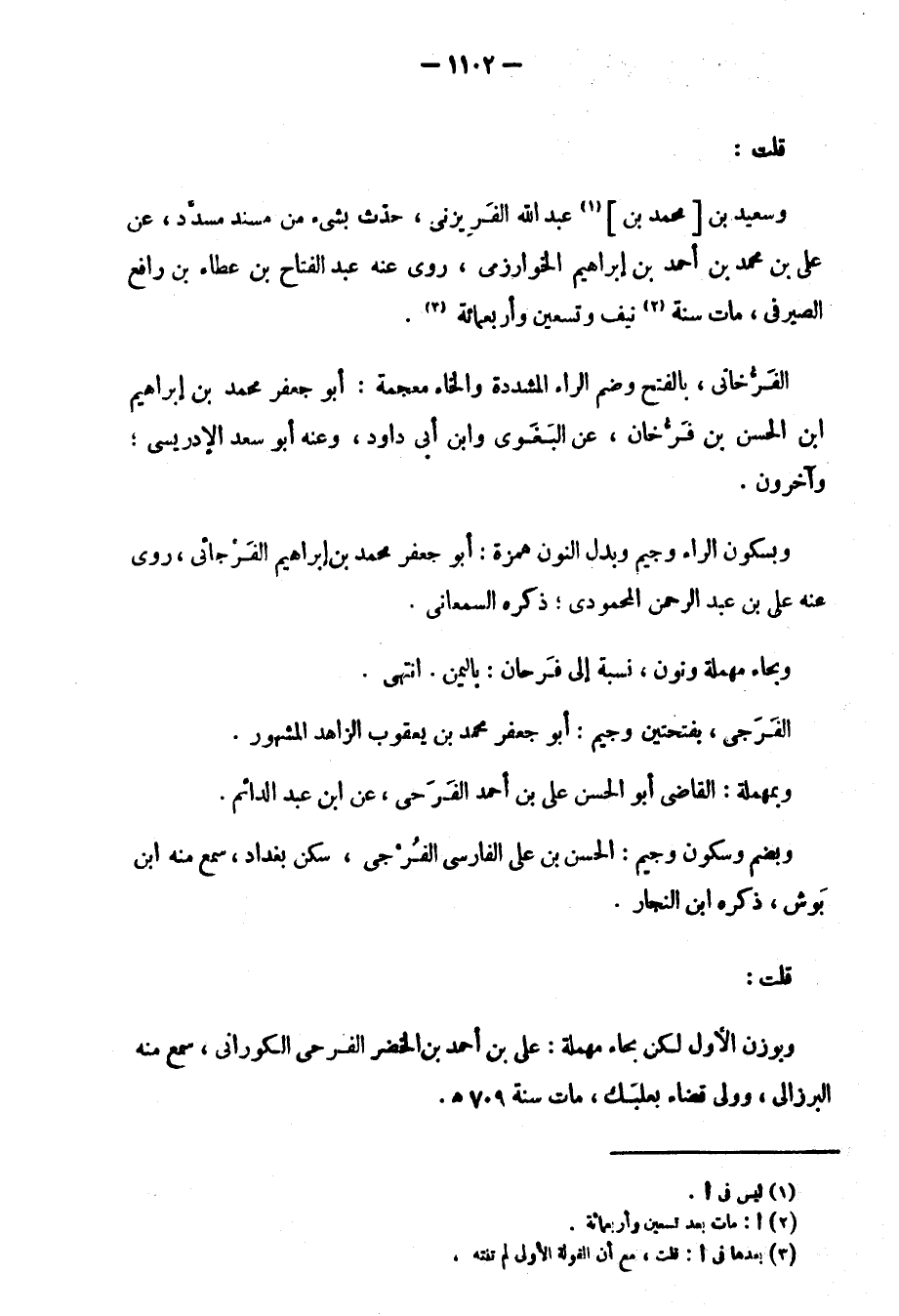 قلت: وسعيد بن محمد بن عبد الله الفريزني، حدث بشيء من مسند مسدد، عن علي بن محمد بن أحمد بن إبراهيم الخوارزمي، روى عنه عبد الفتاح بن عطاء بن رافع الصيرفي، مات سنة نيف وتسعين وأربعمِئَة.