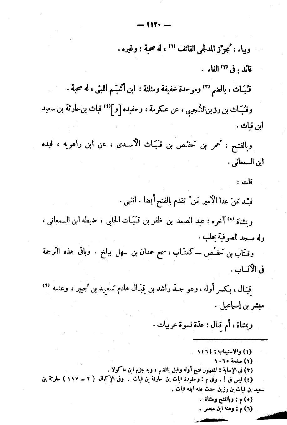 وبمثناة آخره: عبد الصمد بن ظفر بن قبات الحلبي، ضبطه ابن السمعاني، وله مسجد للصوفية بحلب.