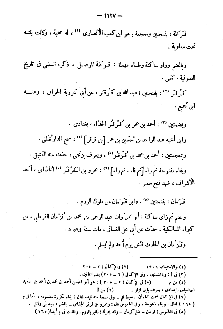 قرقر، بفتحتين: عبد الله بن قرقر، عن أبي عروبة الحراني، ووعنه ابن جميع.