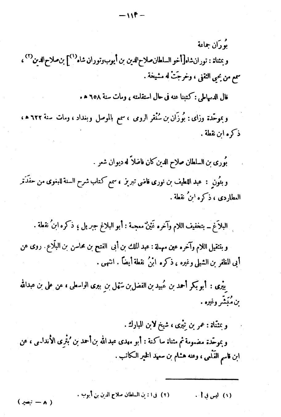 وبمثناة: توران شاه وأخو السلطان صلاح الدين بن أيوب وتوران شاه بن صلاح الدين، سمع من يحي الثقفي، وخرجَتْ لَهُ مشيخة.