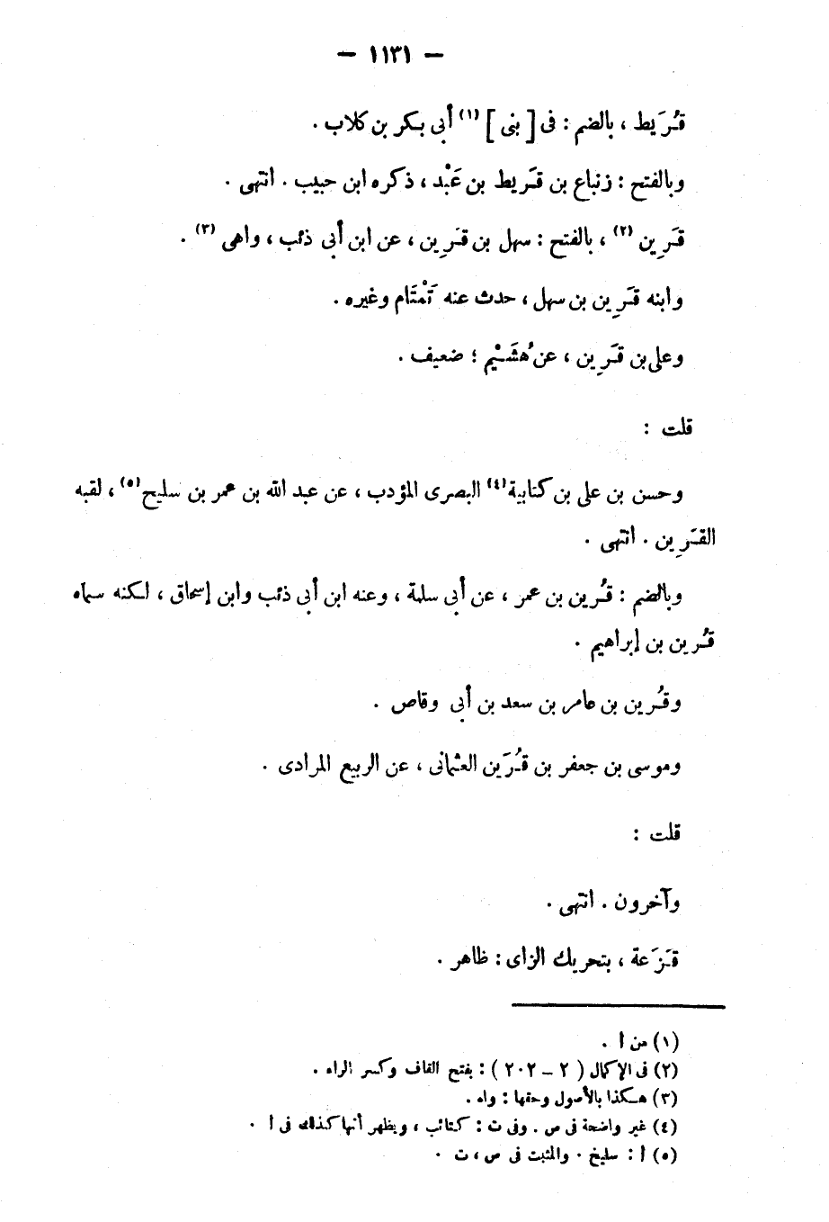 وبالضم: قرين بن عمر، عن أبي سلمة، وعنه ابن ابي ذئب وابن إسحاق، ولكنه سماه قرين بن إبراهيم.