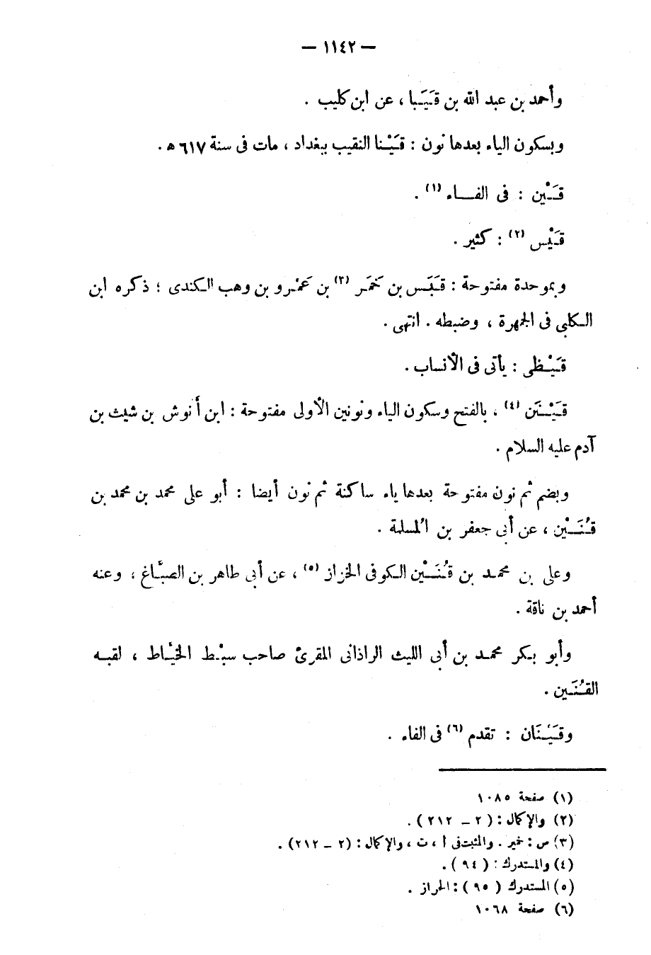 وبضم ثم نون مفتوحة بعدها ياء ساكنة ثم نون أيضاً: أبو علي بن محمد بن محمد بن قنين، عن أبي جعفر بن المسلمة.