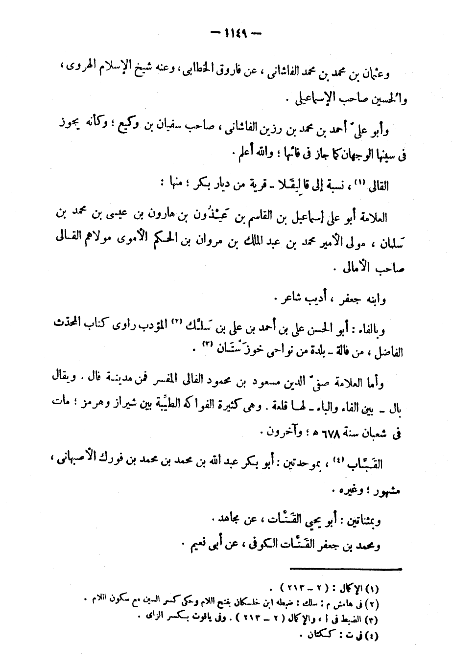 وأما العلامة صفي الدين مسعود بن محمود الفالي المفسر فمن مدينة فال. ويقال بال، بين الفاء والباء، لها قلعة. وهي كثيرة الفواكه الطيبة بين شيراز وهرمز؛ مات في شعبان سنة 678؛ وآخرون.