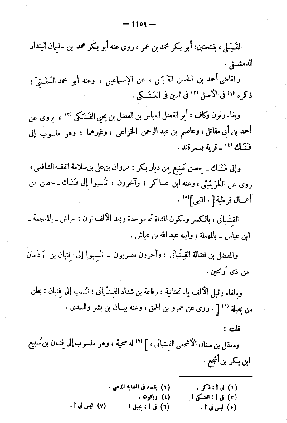 وبالفاء وقبل الألف ياء تحتانية: رفاعة بن شداد الفتياني؛ نسب إلى فتيان: بطن من بجيلة. روى عن عمرو بن الحمق، وعنه بيان بن بشر والسدي.