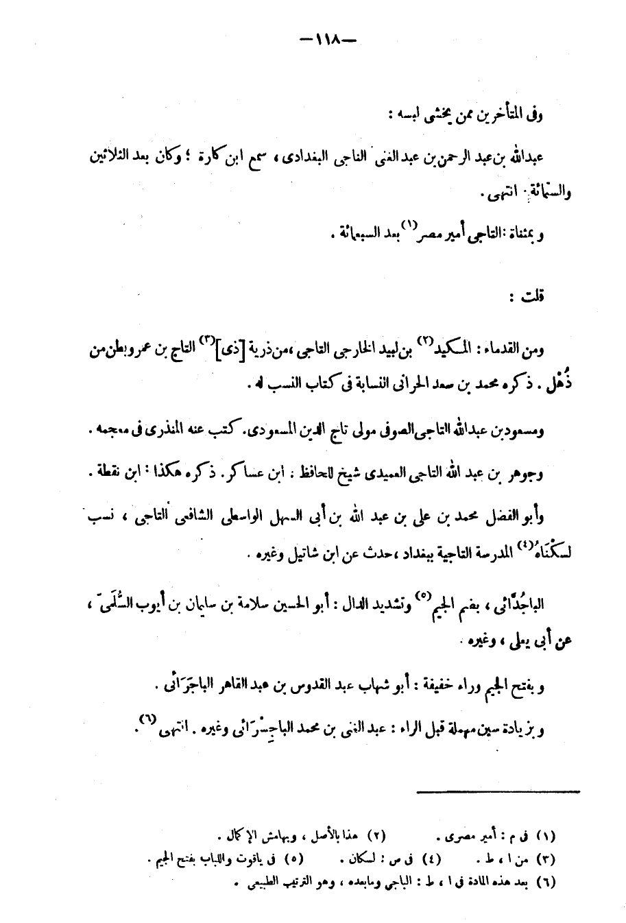قلت: ومن القدماء: المكيد بن لبيد الخارجي التاجي، من ذرية ذي التاج بن عمرو وبطن من ذُهْل. ذكره محمد بن سعد الحراني النسابة فِي كتاب النسب لَهُ.