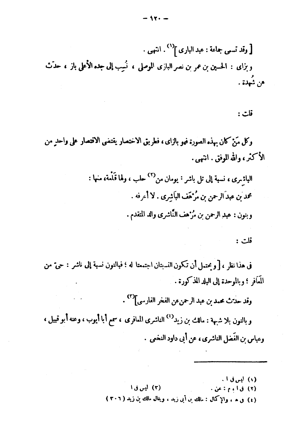 قلت: في هَذَا نظر، ويحتمل أن تكون النسبتان اجتمعتا لَهُ؛ فبالنون نسبة إِلَى ناشر: حَتَّى من المَعافر؛ وبالموحدة إِلَى البلد المذكورة.