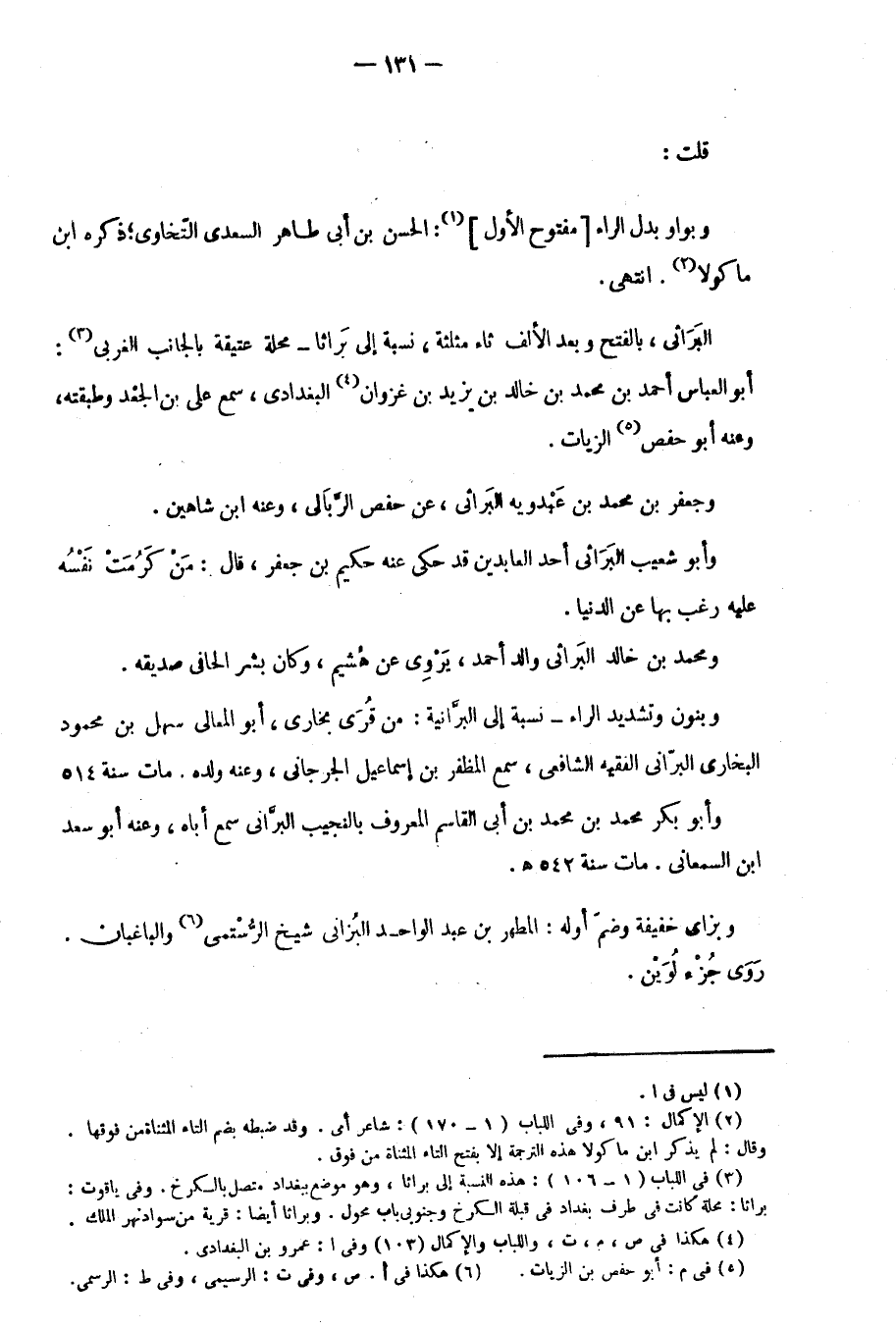 وبنون وتشديد الراء، نسبة إلى البرَّانية: من قُرَى بخارى، أبو المعالي سهل بن محمود البخاري البرّاني الفقيه الشافعي، سمع المظفر بن إسماعيل الجرجاني، وعنه ولده. مات سنة 514.