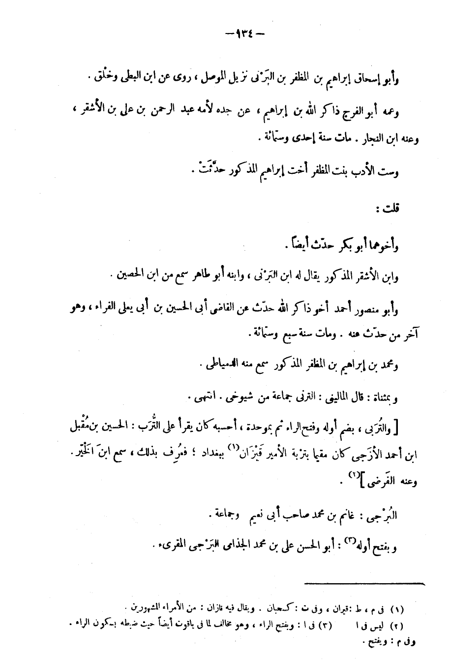 وأبو إسحاق إبراهيم بن المظفر بن البَرْني نزيل الموصل، روى عن ابن البطي وخلْق.
