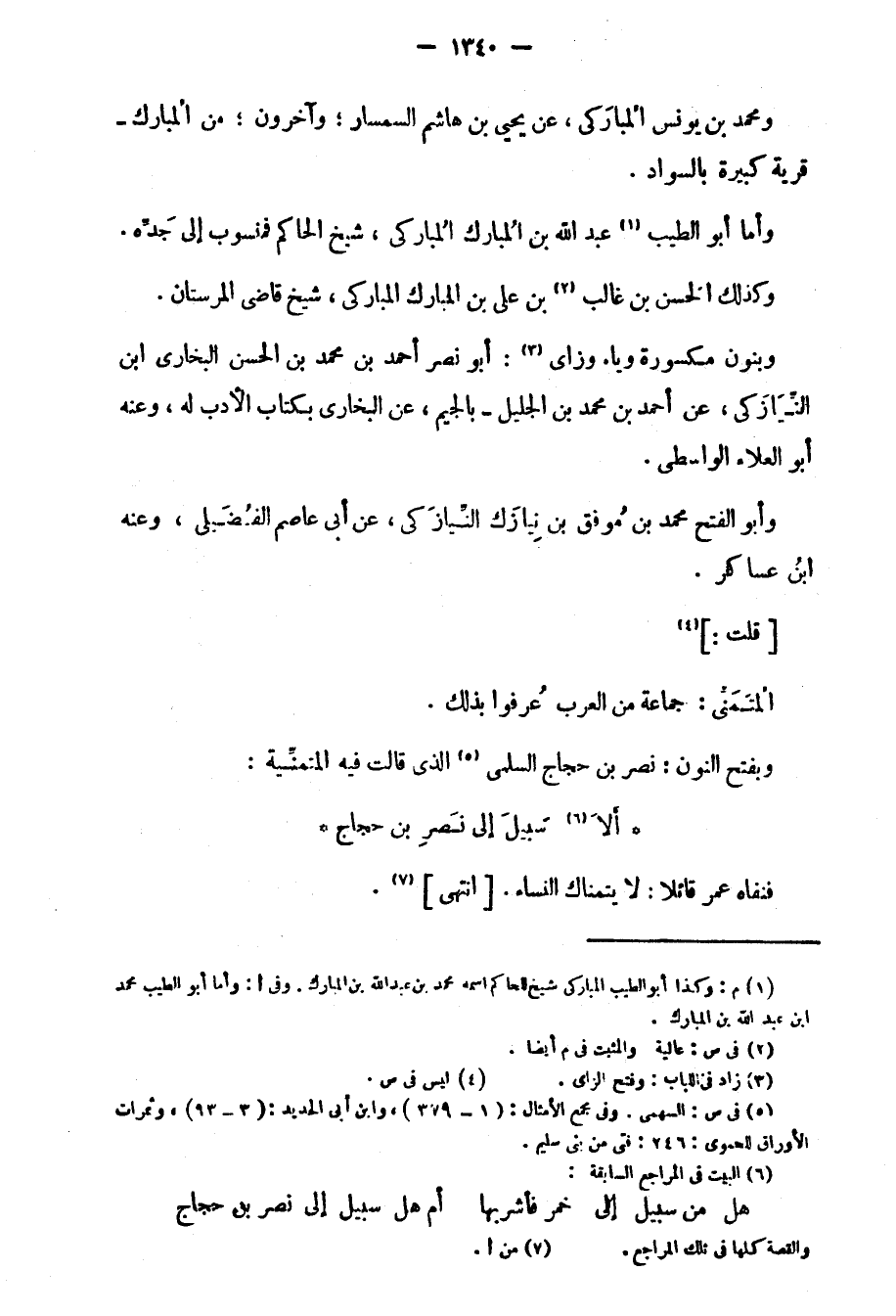 وبفتح النون: نصر بن حجاج السلمي الذي قالت فيه المتمنِّية: