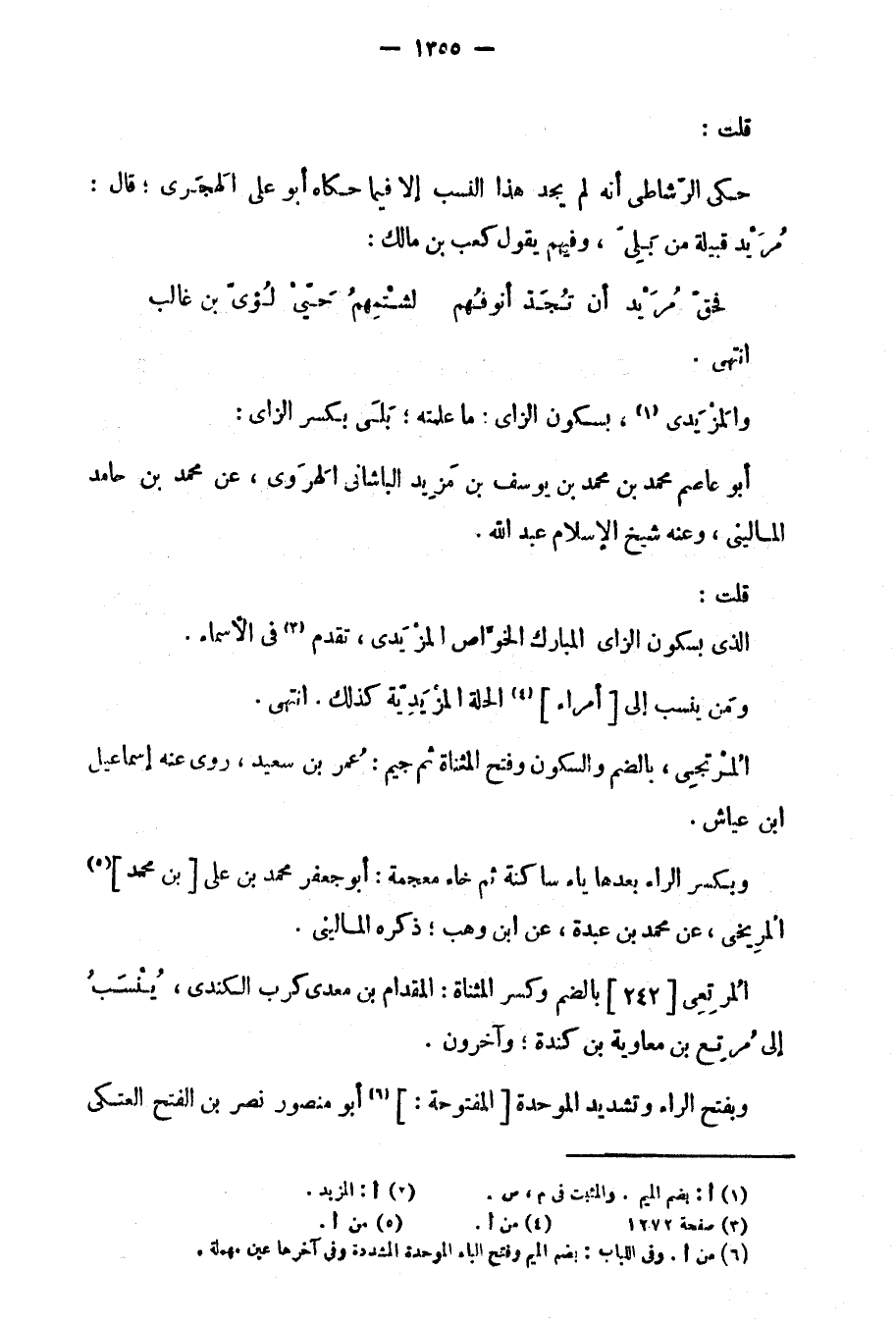 قلت: حكى الرّشاطي أنه لم يجد هذا النسب إلا فيما حكاه أبو علي الهَجَري؛ قال: مُرَيْد قبيلة من بَلِى، وفيهم يقول كعب بن مالك: