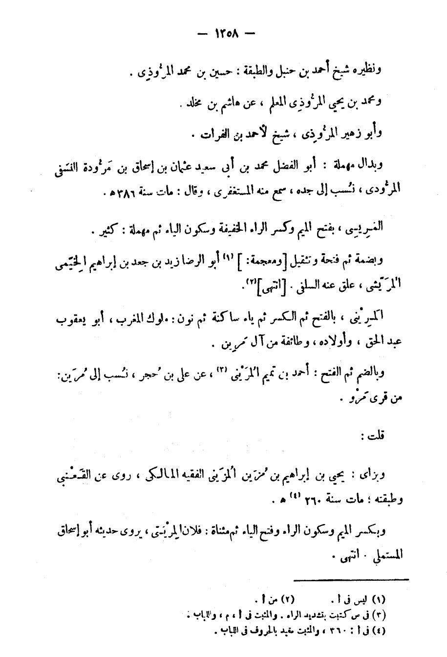 قلت: وبزاي: يحيى بن إبراهيم بن مُزَين المُزَيني الفقيه المالكي، روى عن القَعْنبي وطبقته؛ مات سنة 260 هـ.