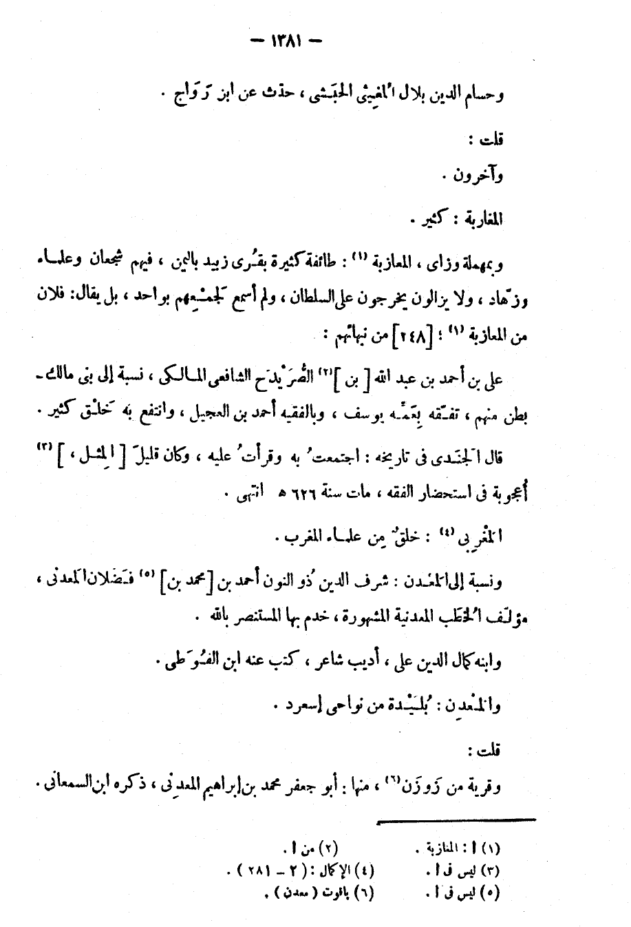 وبمهملة وزاي، المعازبة: طائفة كثيرة بُقرى زبيد باليمن، فيهم شجعان وعلماء وزهّاد، ولا يزالون يخرجون على السلطان، ولم أسمع لجمعهم بواحد، بل يقال: فلان من المعازبة: 248 من نبهائهم: