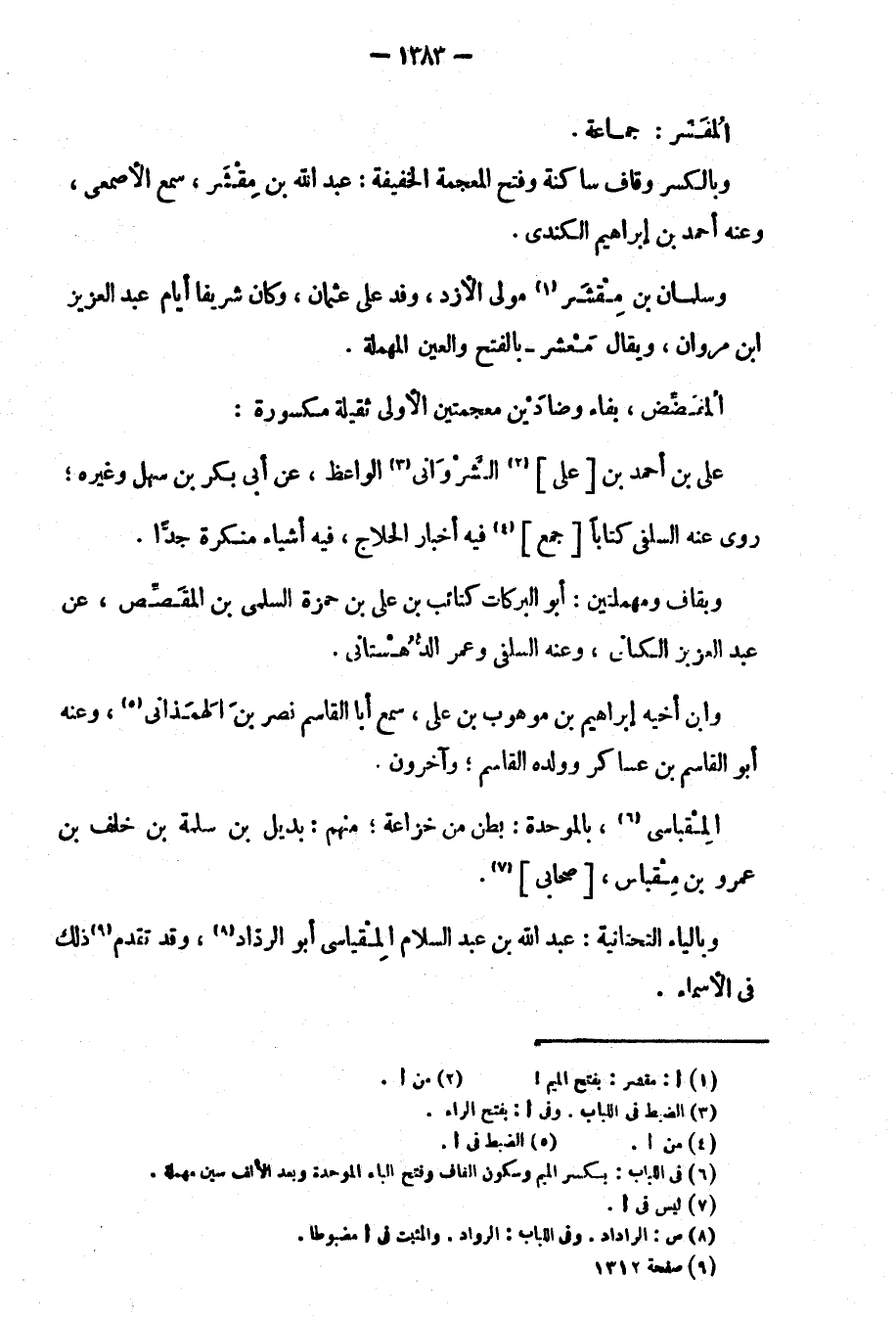 وسلمان بن مقشر مولى الأزد، وفد على عثمان، وكان شريفاً أيام عبد العزيز ابن مروان، ويقال معشر، بالفتح والعين المهلمة.