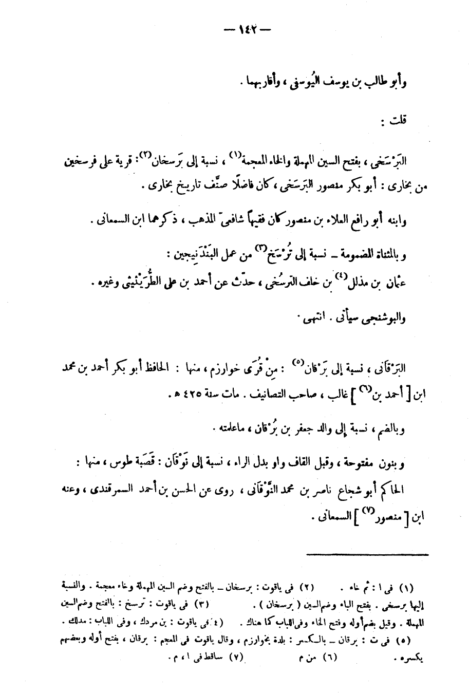 قلت: البَرْسَخي، بفتح السين المهملة والخاء المعجمة، نسبة إلى بَرسخان: قرية عَلَى فرسخين من بخارى: أبو بكر منصور البَرسَخي، كان فاضلاً صنَّف تاريخ بخارى.