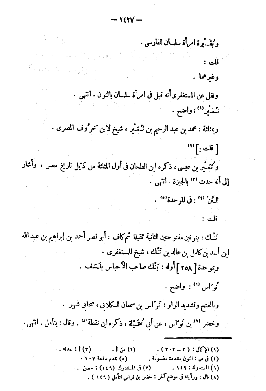 قلت: ننَّك، بنونين مفتوحتين الثانية ثقيلة ثم كاف: أبو نصر أحمد بن إبراهيم بن عبد الله ابن أسد بن كامل بن خالد بن ننَّك، شيخ للمستغفري.