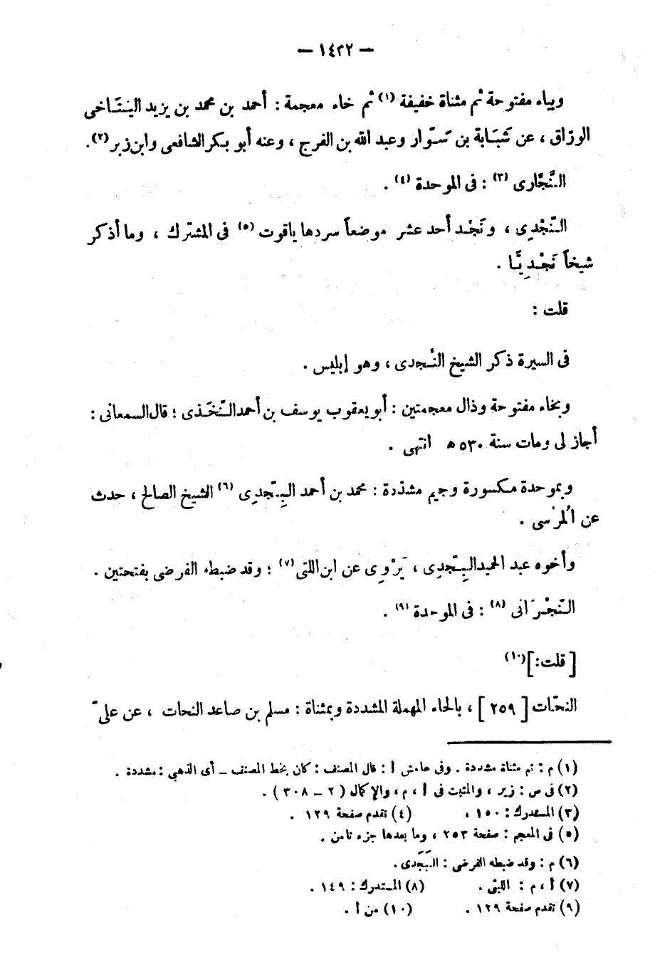 النّجدي، ونَجد أحد عشر موضعاً سردها ياقوت في المشترك. وما أذكر شيخاً نجديَّاً.