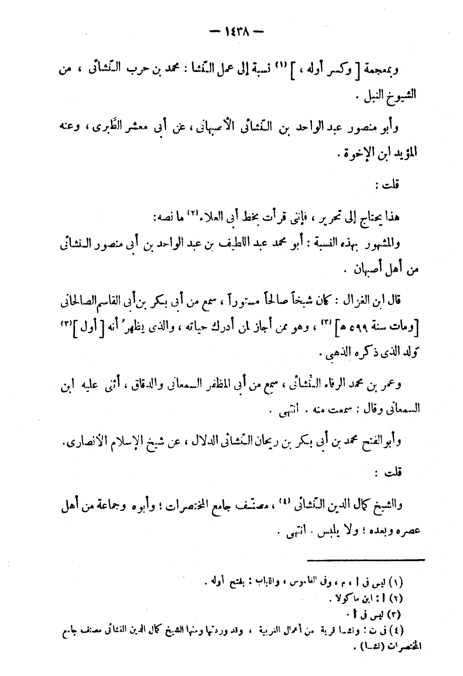 قلت: والشيخ كمال الدين النّشائي، مصنّف جامع المختصرات؛ وأبوه وجماعة من أهل عصره وبعده؛ ولا يلبس. انتهى.