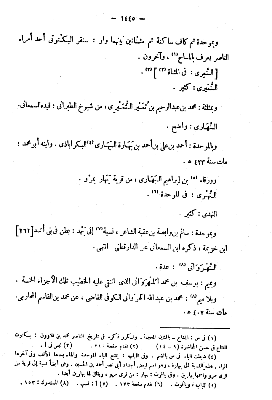 وبالموحدة: أحمد بن علي بن أحمد بن بهارة البهاري البكراباذي. وابنه أبو محمد؛ مات سنة 423 هـ.
