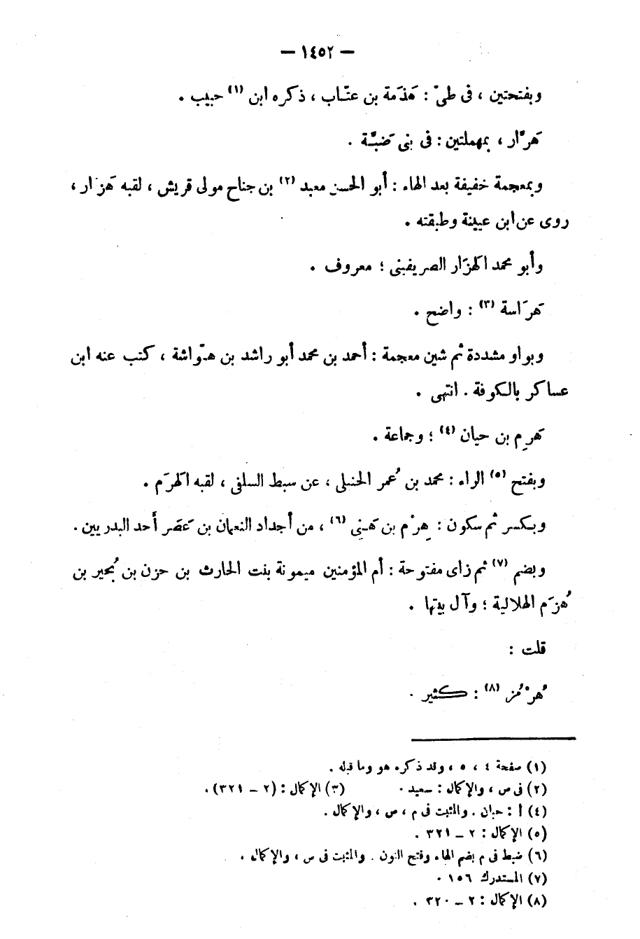 وبمعجمة خفيفة بعد الهاء: أبو الحسين معبد بن جناح مولى قريش، لقبه هزار، روى عنه ابن عيينة وطبقته.