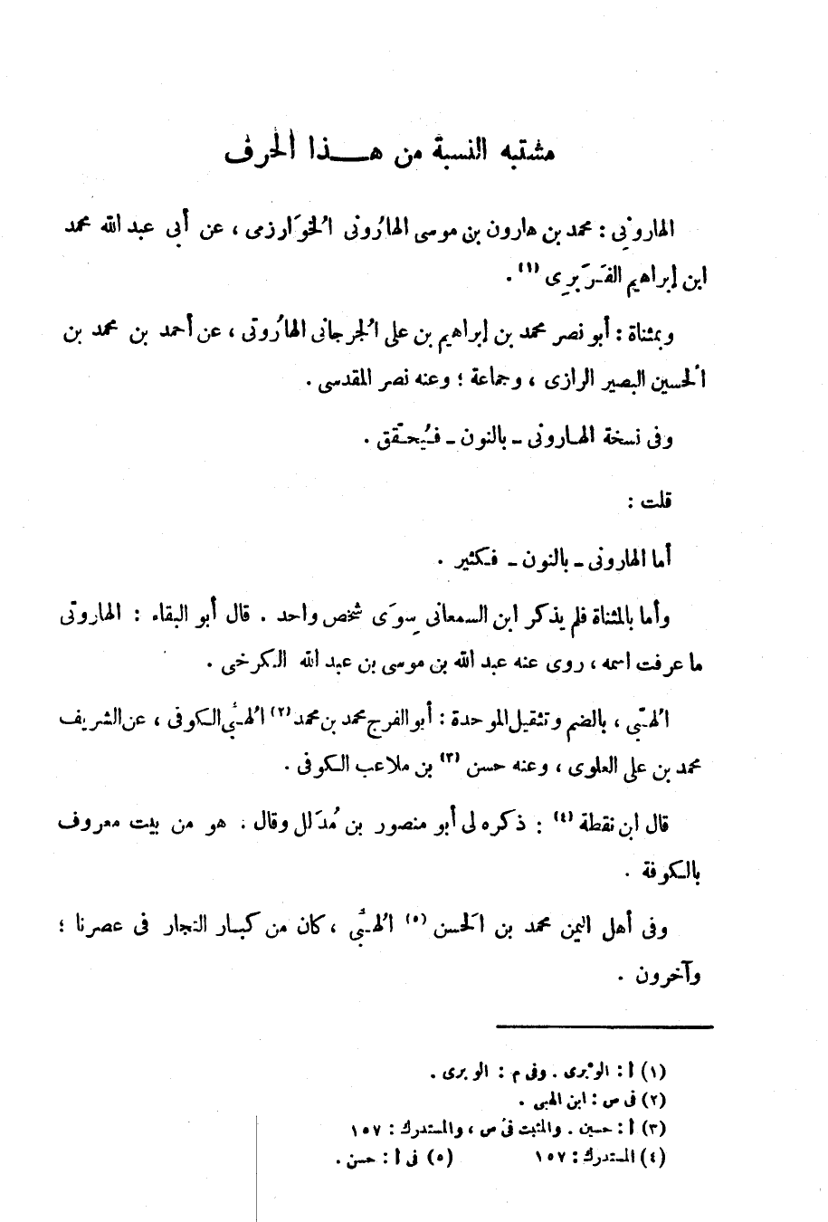 وأما بالمثناة فلم يذكر ابن السمعاني سوى شخص واحد. قال أبو البقاء: الهاروتي ما عرفت اسمه، روى عنه عبد الله بن موسى بن عبد الله الكرخي.