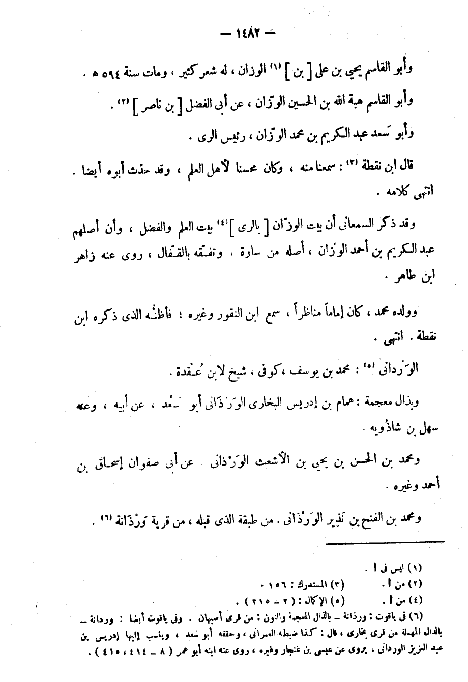 وقد ذكر السمعاني أن بيت الوزان بالرى بيت العلم والفضل، وأن أصلهم عبد الكريم بن أحمد الوزان، أصله من ساوة، وتفقّه بالقفال، روى عنه زاهر ابن طاهر.