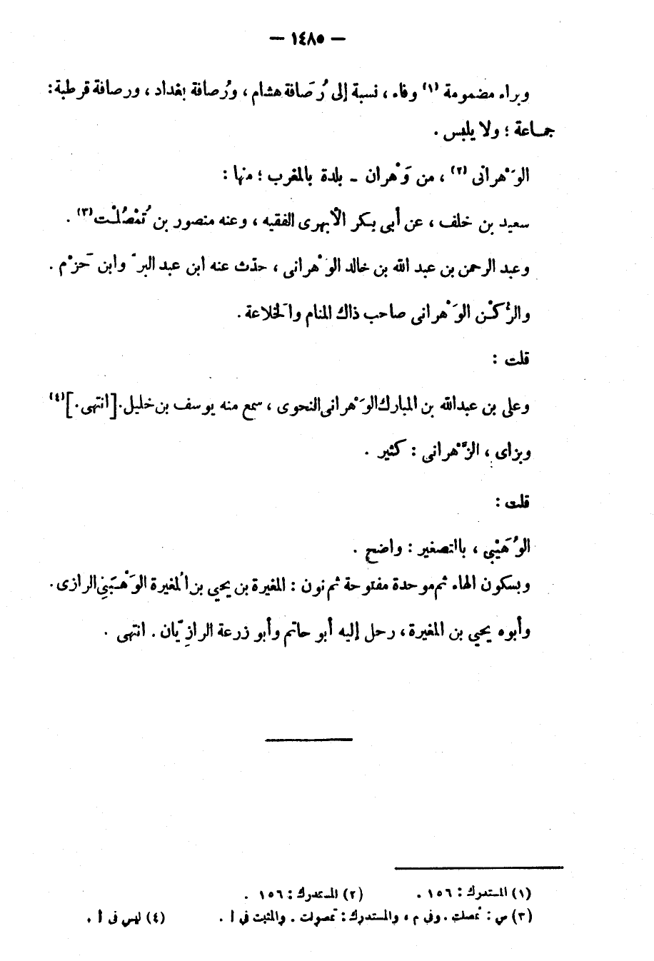 وبسكون الهاء ثم موحدة مفتوحة ثم نون: المغيرة بن يحيى بن الوهبني الرازي.