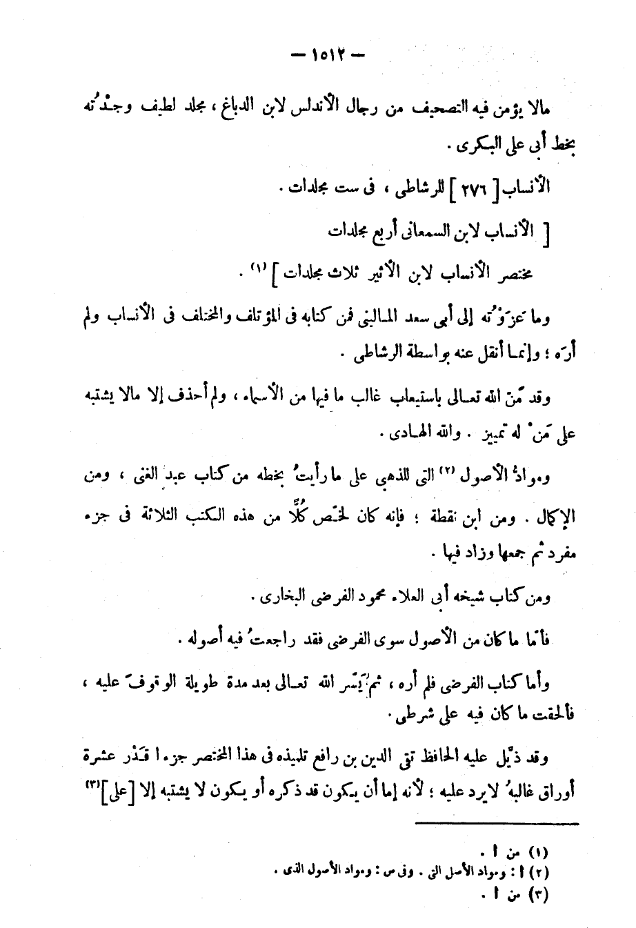 وموادّ الأصول التي للذهبي على مارأيت بخطه من كتاب عبد الغني، ومن الإكمال ومن ابن نقطة؛ فإنه كان لخّص كلا من هذه الكتب الثلاثة في جزء مفرد ثم جمعها وزاد فيها.