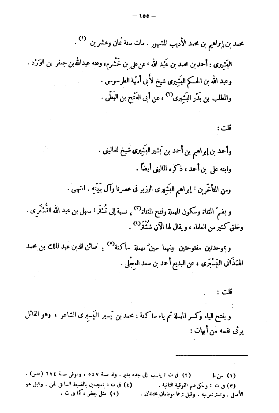 ومن المتأخرين: إبراهيم البَشِيري الوزير في عصرنا وآل بَيْتِه. انتهى.