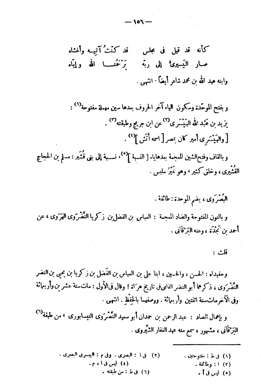 وبإهمال الصاد: عبد الرحمن بن حمدان أبو سعيد النَّصْرَوي النيسابوري، من طبقة البَرْقَاني، مشهور، سمع منه عبد الغفار الشِّيروي.